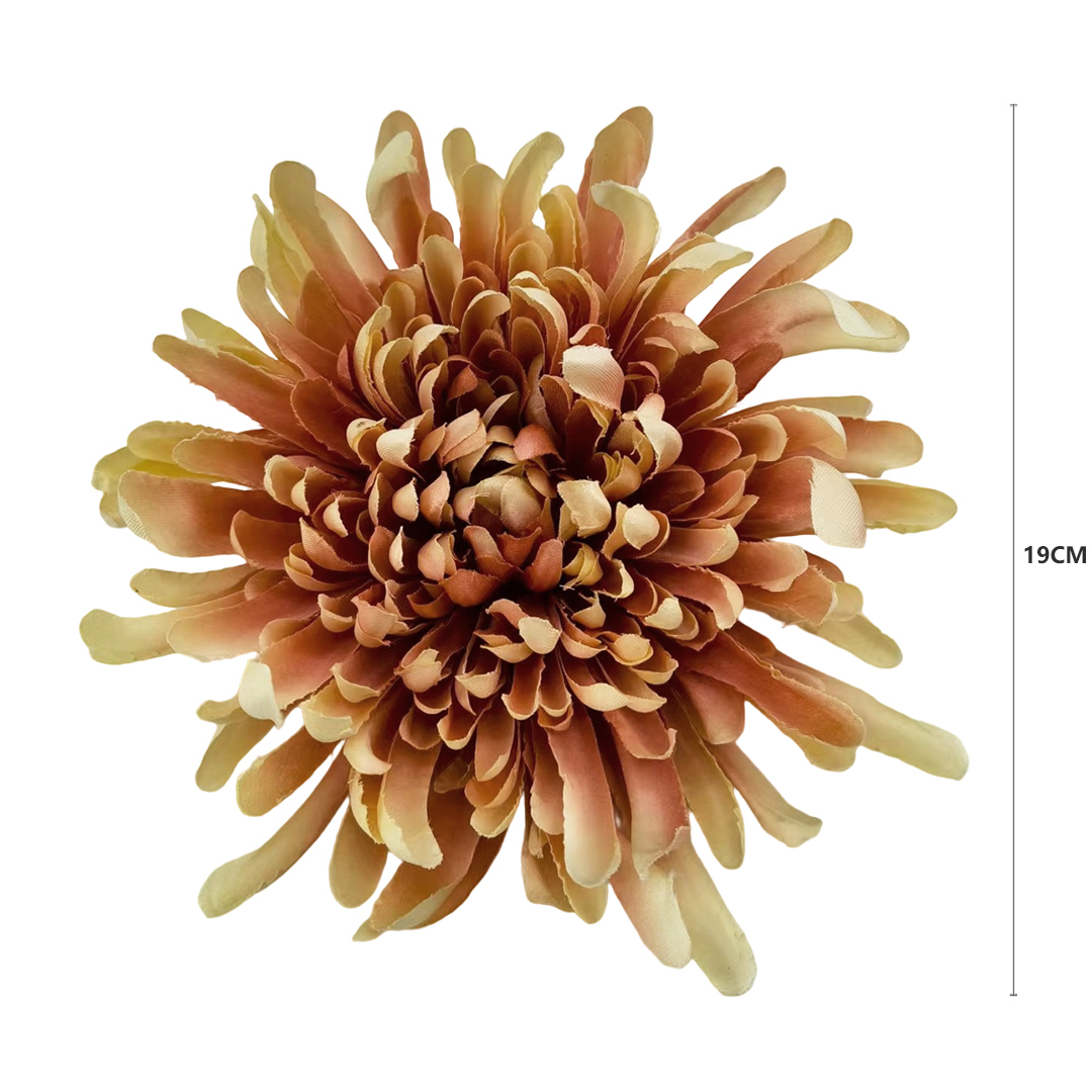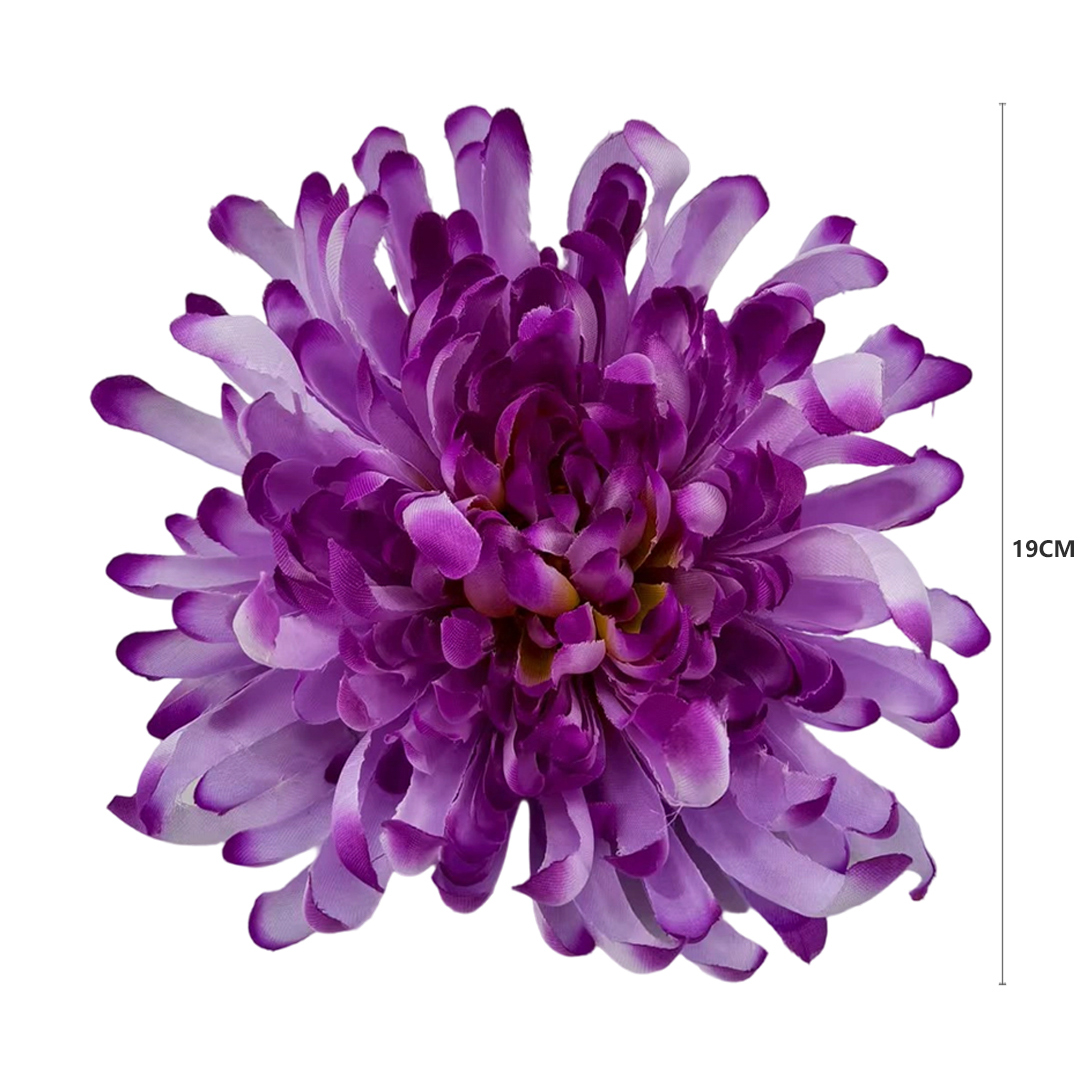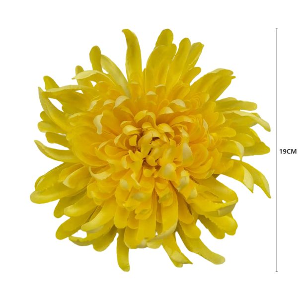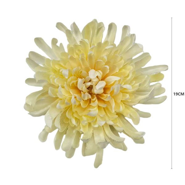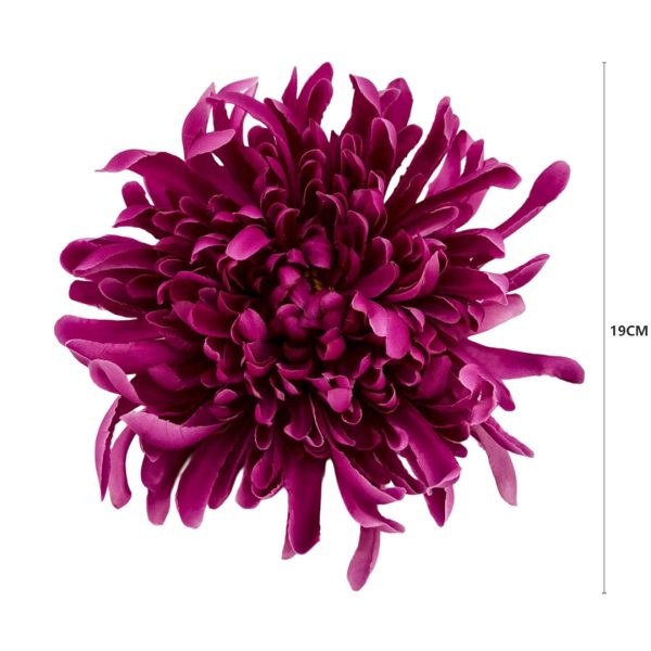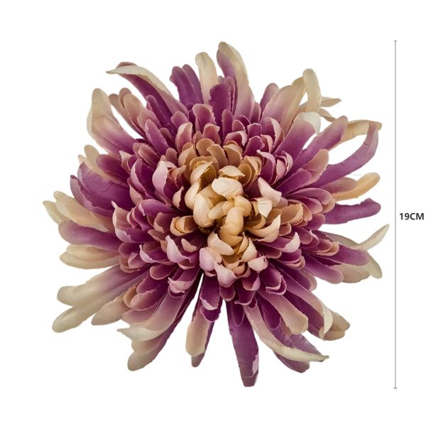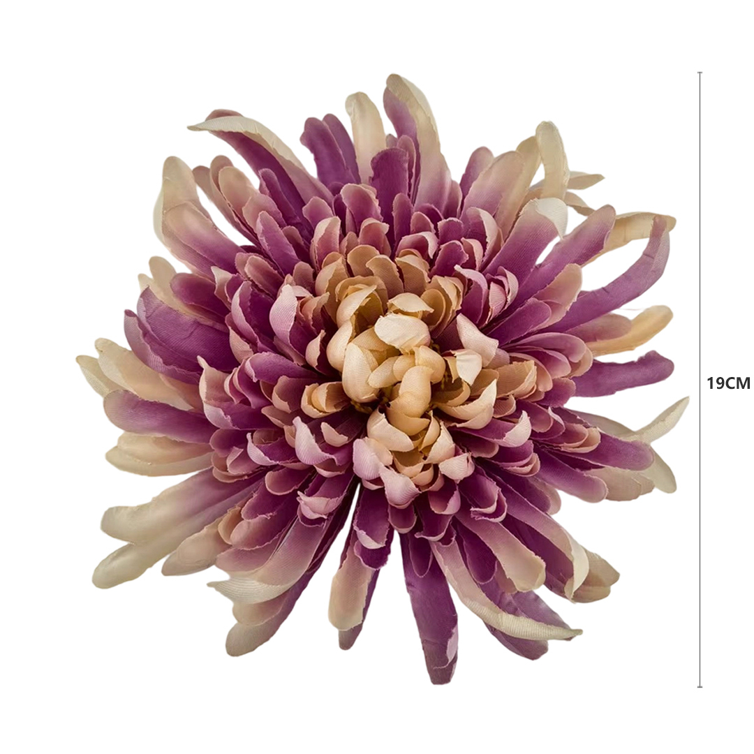 Dodaj elegancji i uroku swoim dekoracjom dzięki pięknej sztucznej główce chryzantemy o średnicy 19 cm. Wykonana z delikatnego materiału, zachwyca subtelnym połyskiem i realistycznym wyglądem. Posiada 14 płatków, które nadają jej lekkości i naturalności.