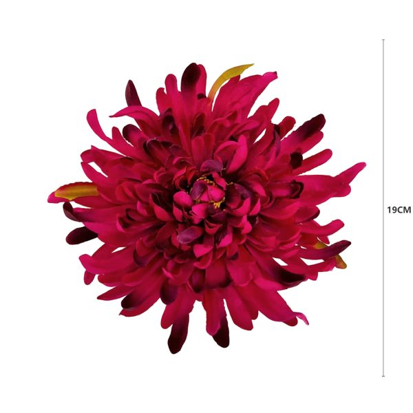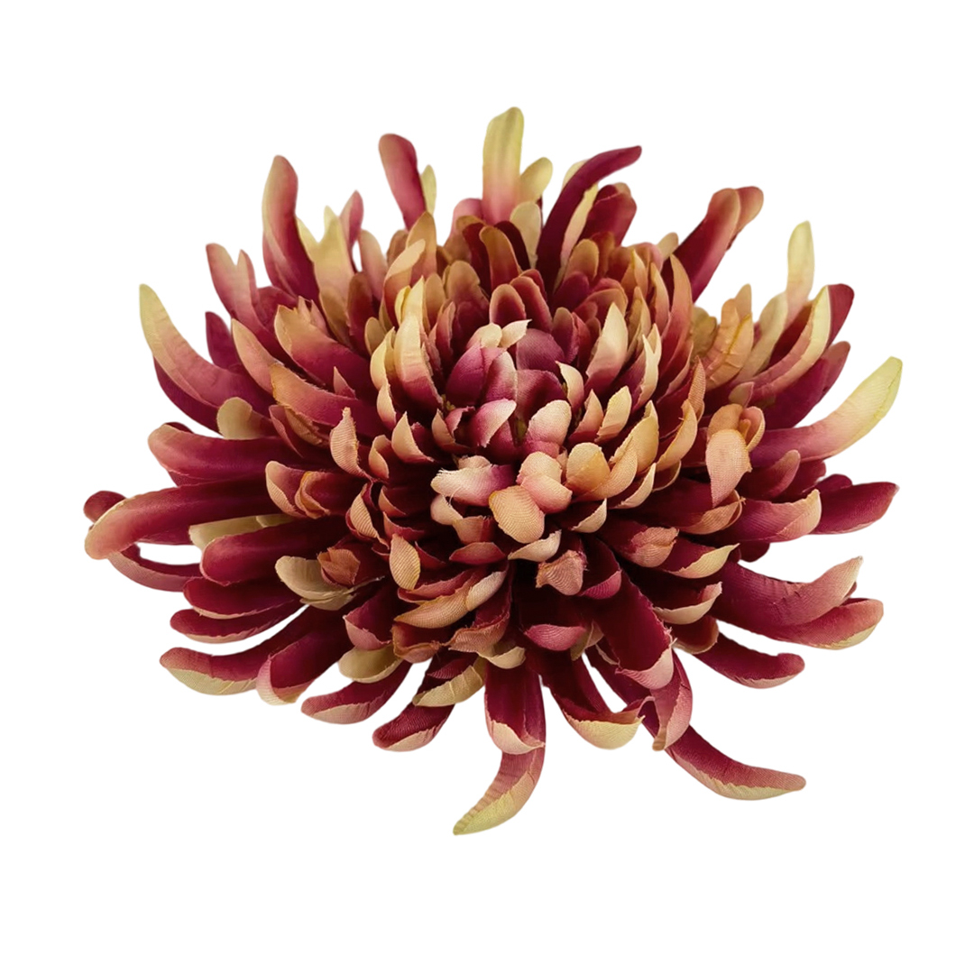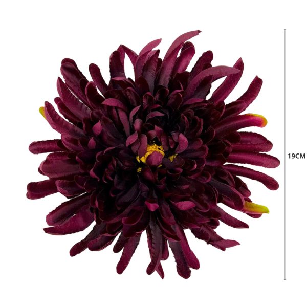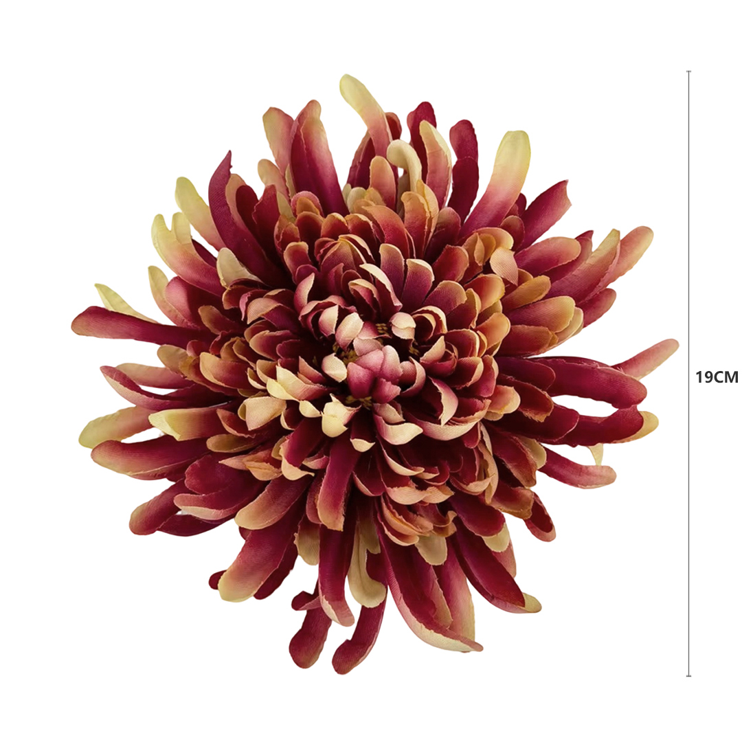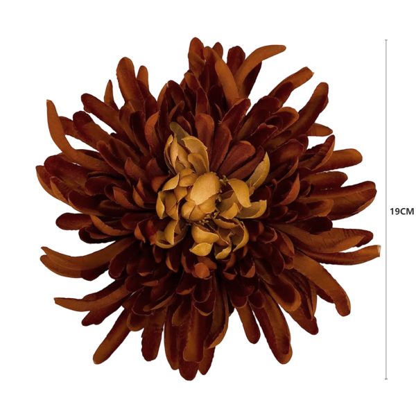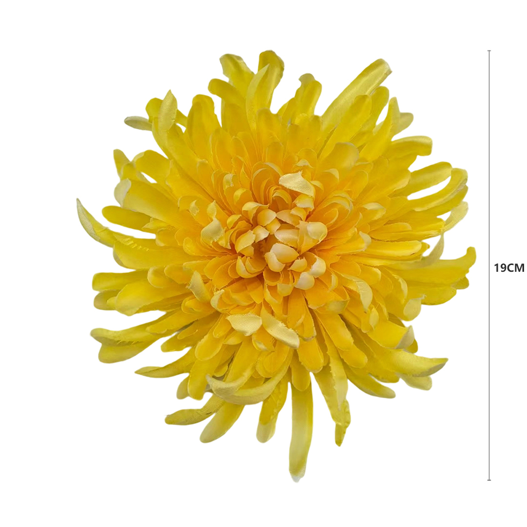 Dodaj elegancji i uroku swoim dekoracjom dzięki pięknej sztucznej główce chryzantemy o średnicy 19 cm. Wykonana z delikatnego materiału, zachwyca subtelnym połyskiem i realistycznym wyglądem. Posiada 14 płatków, które nadają jej lekkości i naturalności.