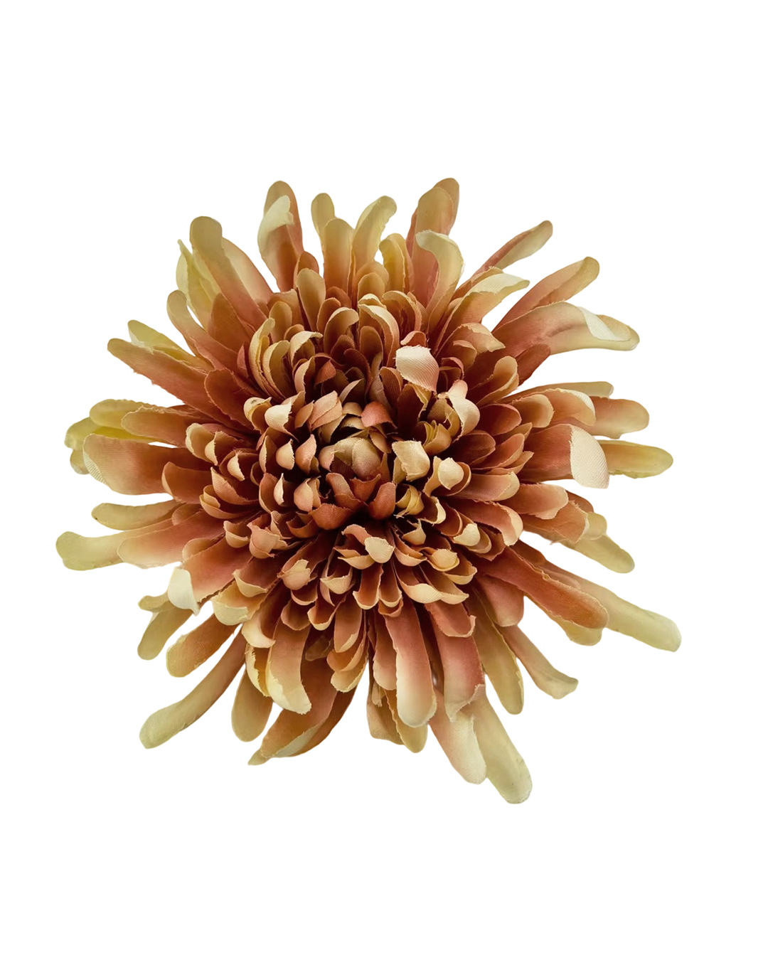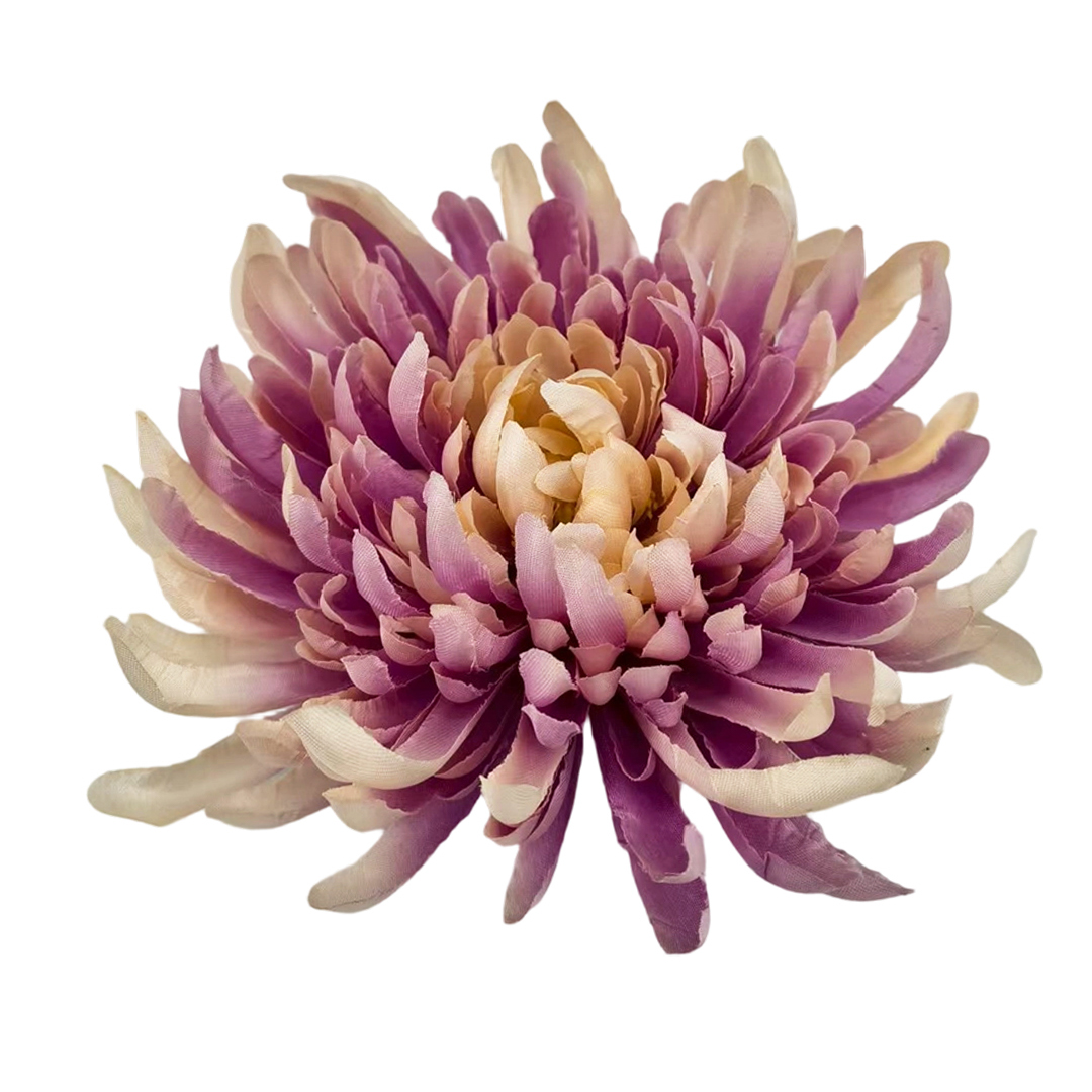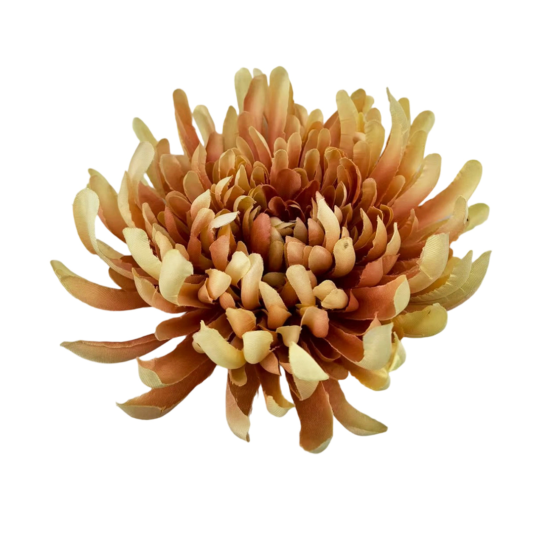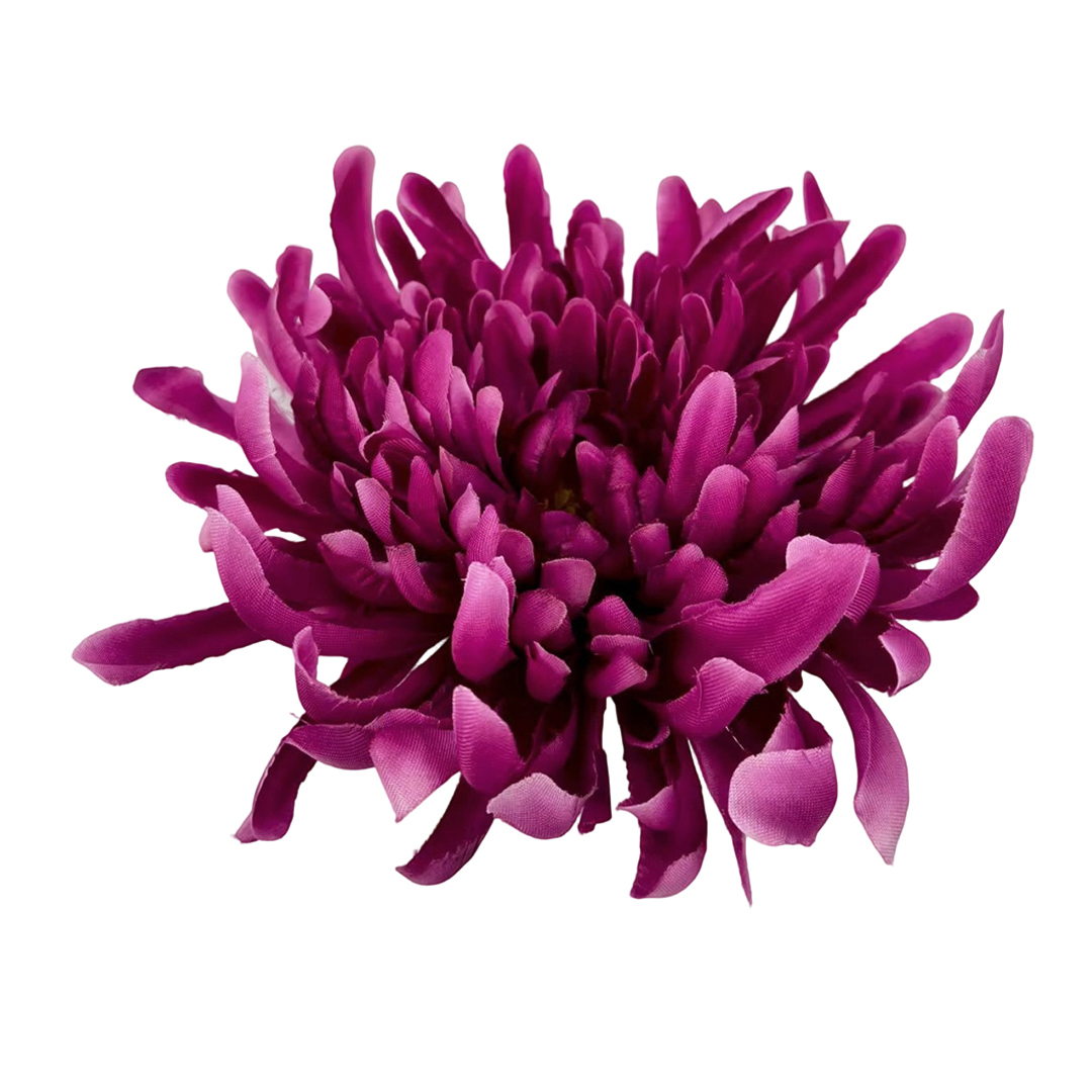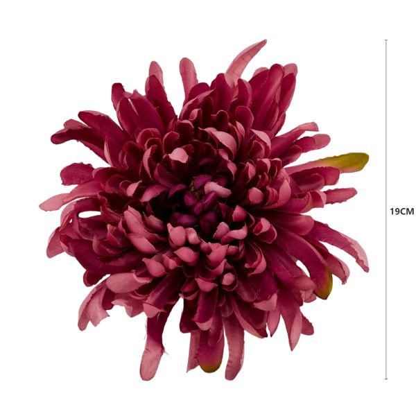 Dodaj elegancji i uroku swoim dekoracjom dzięki pięknej sztucznej główce chryzantemy o średnicy 19 cm. Wykonana z delikatnego materiału, zachwyca subtelnym połyskiem i realistycznym wyglądem. Posiada 14 płatków, które nadają jej lekkości i naturalności.