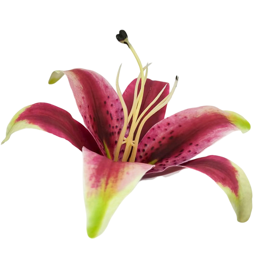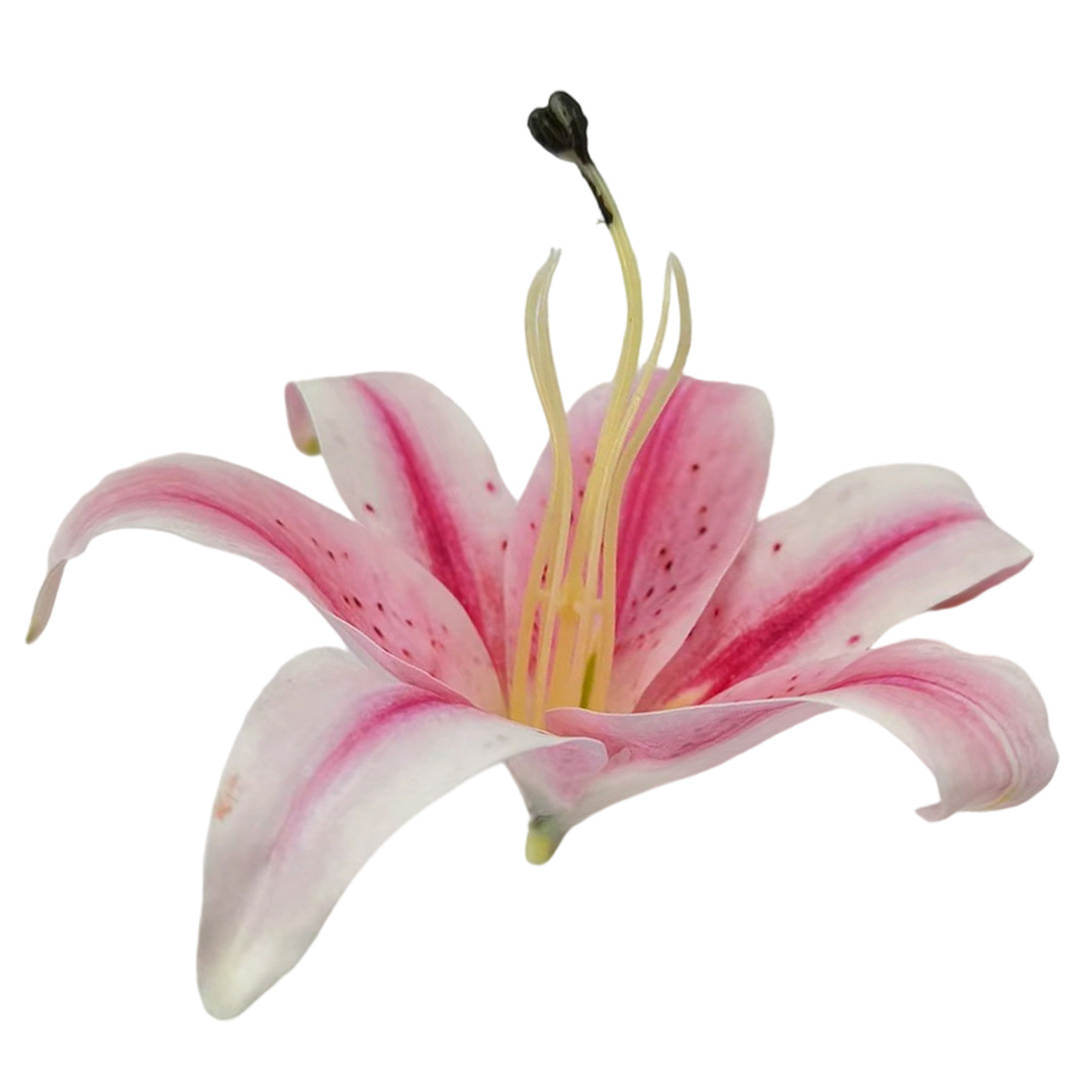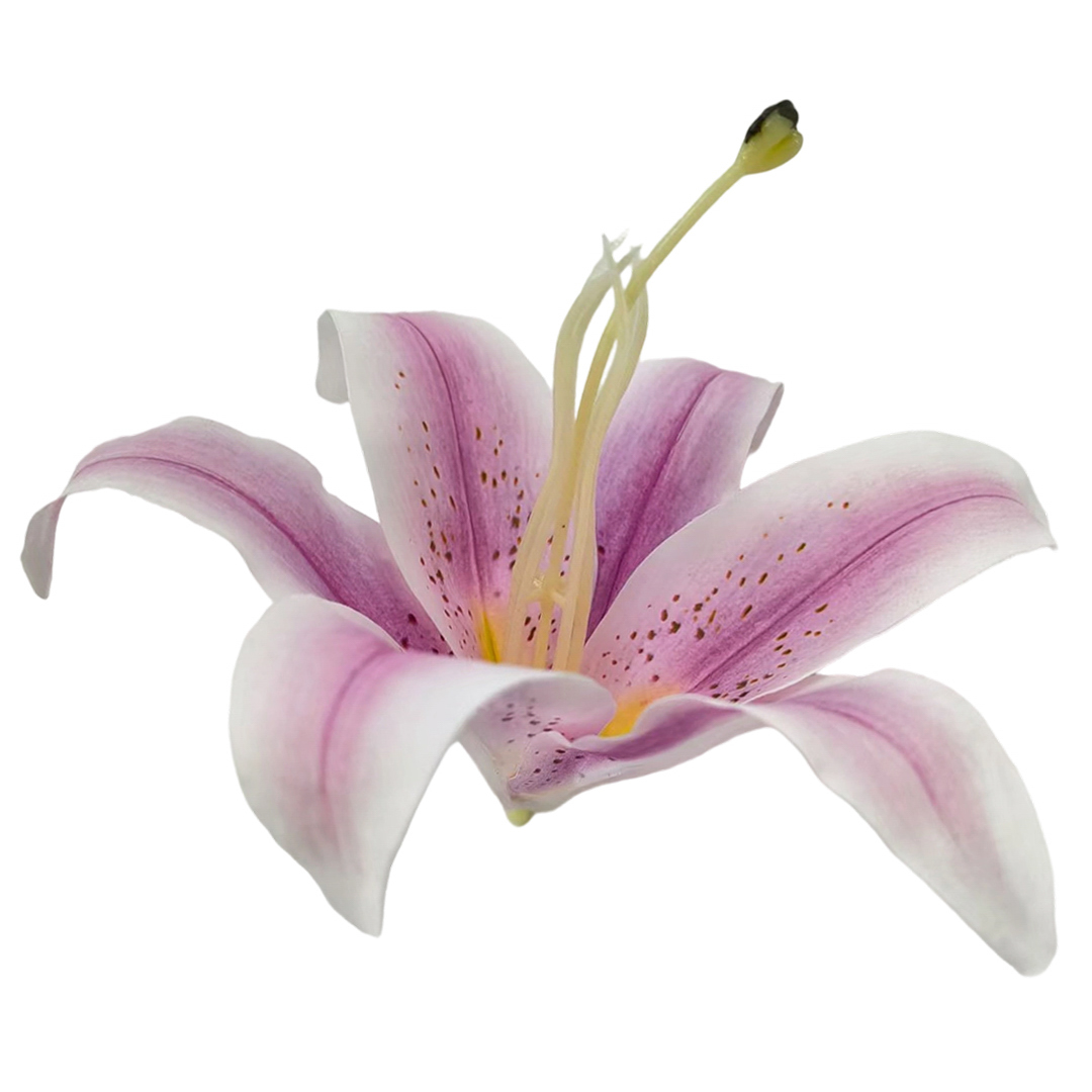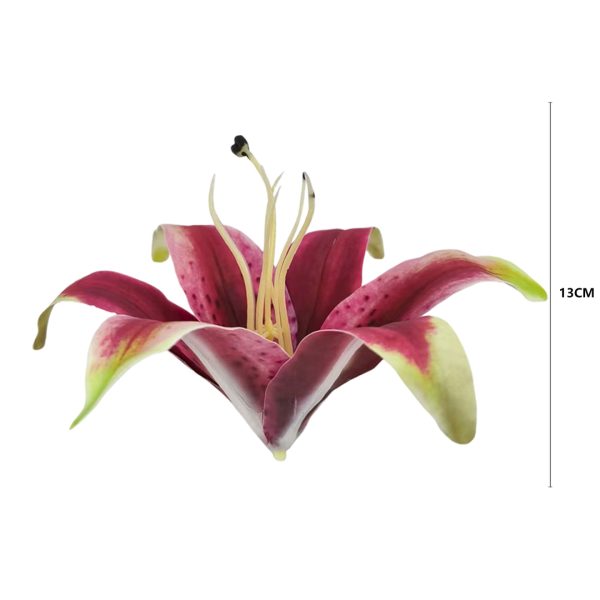 Główka kwiatowa LIlii to idealna baza do tworzenia dekoracji florystycznych, stroików i bukietów. Dzięki realistycznemu wyglądowi doskonale imituje naturalny kwiat, a wysoka jakość wykonania gwarantuje trwałość i estetykę przez długi czas. Sztuczne główki kwiatów sprawdzą się w kompozycjach świątecznych, weselnych, dekoracjach domowych oraz jako element ozdobny do rękodzieła.