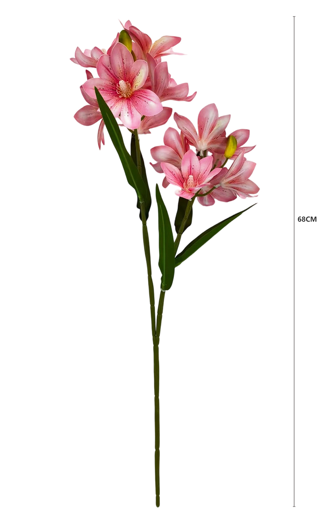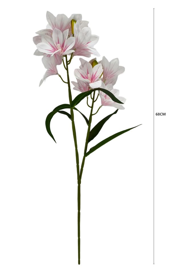 Nasz Kwiat Frezji o długości 68 cm to wyjątkowy dodatek do każdego wnętrza, łączący w sobie elegancję oraz trwałość. Wykonany z wysokiej jakości materiałów, ten sztuczny kwiat imituje naturalne piękno frezji, zachwycając swoimi detalami i realistycznym wyglądem. Oferowany w czterech urokliwych kolorach: kremowym, jasno różowym, purpurowym i różowym, doskonale sprawdzi się zarówno w pojedynczym wazonie, jak i w kompozycjach bukietowych, stroikach oraz aranżacjach florystycznych.