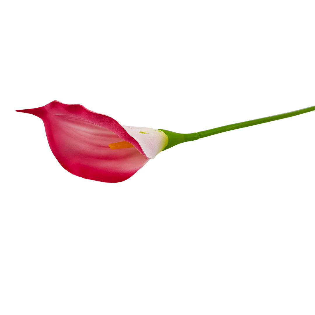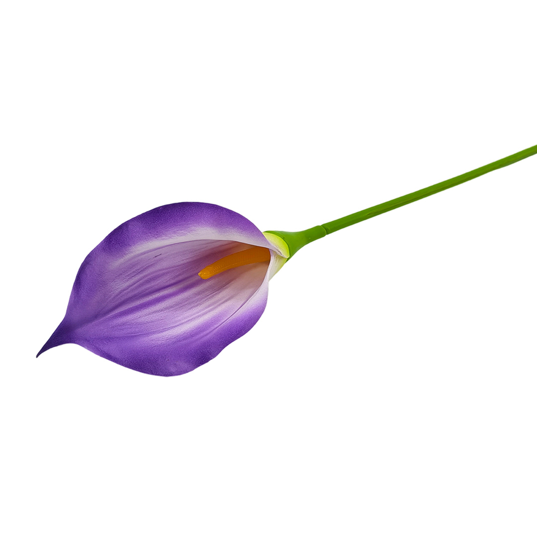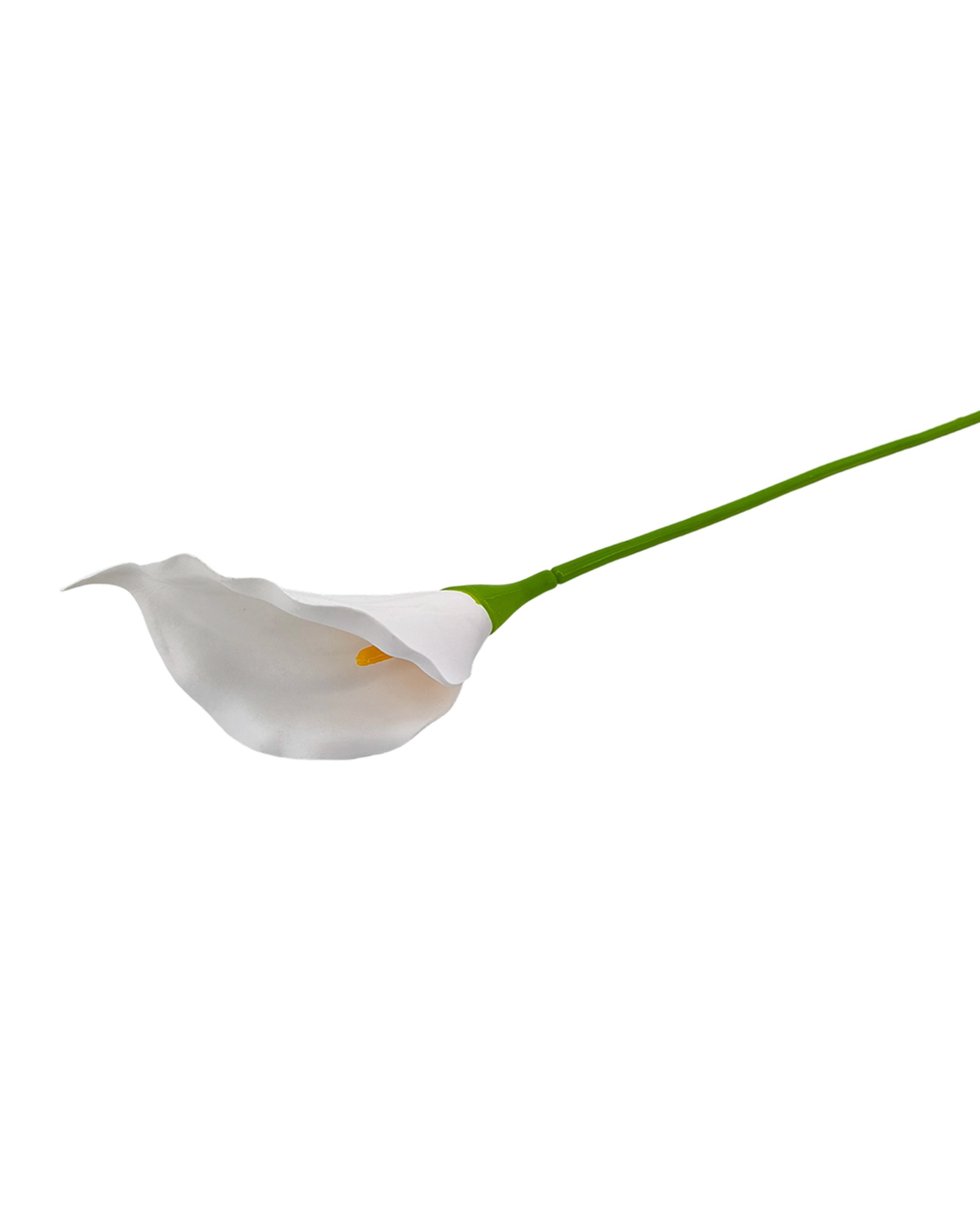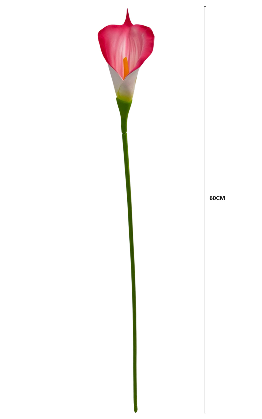 Wprowadź do swojego wnętrza nutę elegancji i prostoty z sztuczną kalią o wysokości 60 cm. Ten piękny, pojedynczy kwiat zachwyca naturalnym wyglądem, delikatnie wygiętym kielichem i głębokim kolorem, który wiernie odwzorowuje prawdziwą kalię.