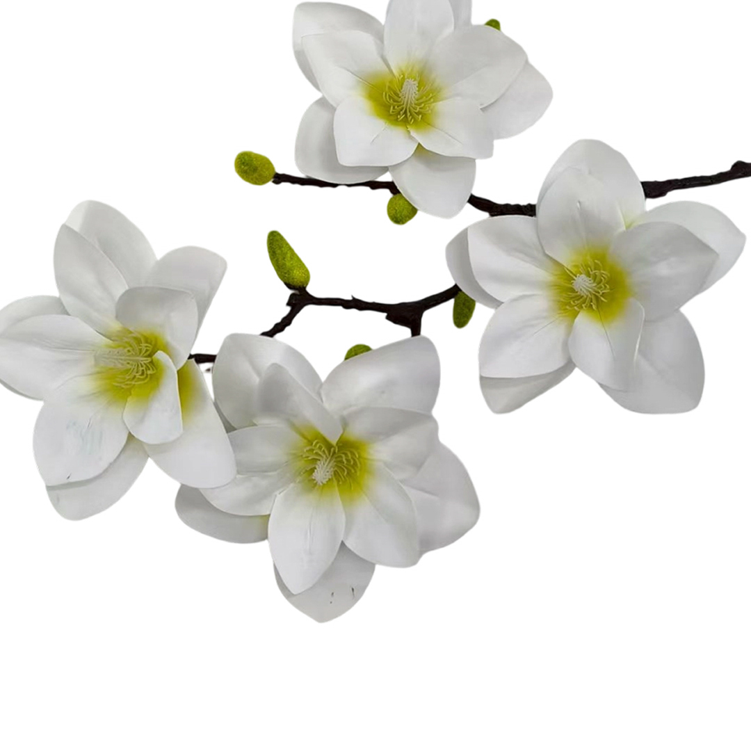 Dzięki specjalnej strukturze materiału magnolia jest bardzo trwała, a jej liście i kwiaty wyglądają jak żywe. To doskonały wybór dla osób, które pragną cieszyć się pięknem roślin przez cały rok – bez pielęgnacji.
